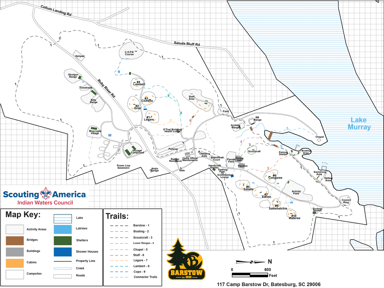 When US-1 and US-378 split, stay Right on US-378. Stay on US-378 for 17.5 miles until you arrive at the Saluda Traffic Circle. From the traffic circle, take your first Right onto US-391 (North) toward Prosperity.Travel on US-391 for 1.6 miles. Turn Left onto Mt. Willing Rd. SR 42 59. You will see a brown sign directing you to Camp Barstow. Stay on Mt. Willing Rd. SR42 59 for 2.8 miles. Turn Right onto Collum Landing at the Camp Barstow sign.Turn Right onto Ruby Riser Rd. Parking area is 1 mile on the left.